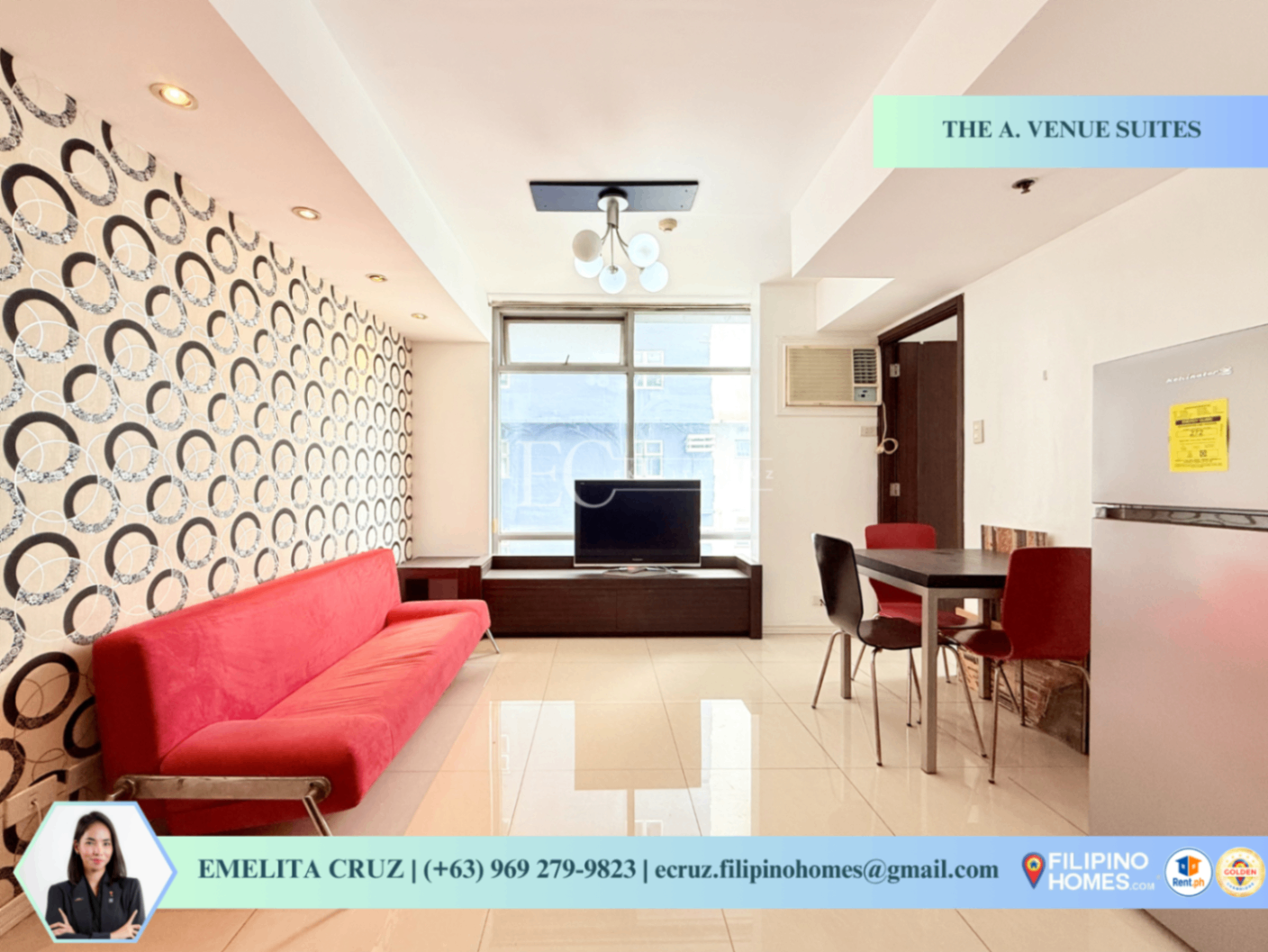 CORNER 1BR UNIT WITH PARKING FOR RENT AT THE A. VENUE SUITES, MAKATI Floor Area: 38sqm RENTAL: P35k/month inclusive of association dues and Parking (negotiable) ✅ Furnished ✅ 1 Bedroom ✅ 1 Toilet & Bath ✅ With Washing Machine ✅ Corner Unit ✅ With the View of Rockwell ✅ 22nd Floor ✨AMENITIES✨ 🔶Children's Play Area 🔶24 hour front desk 🔶Fitness Center 🔶Swimming Pool . . . Direct Message | Call | Viber | Whatsapp | (+63) 969 279-9823
